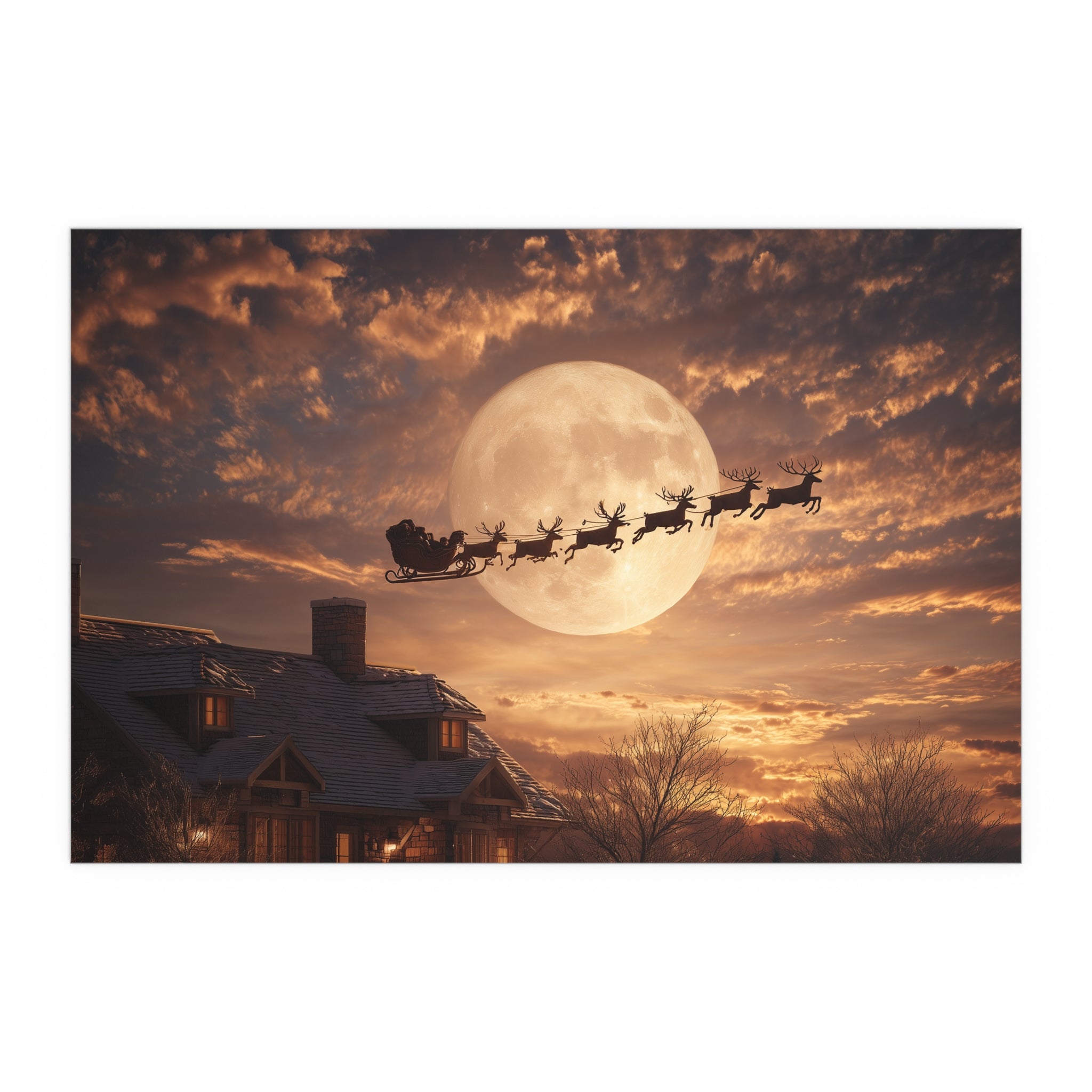 Santa's Sleigh Over Full Moon - Matte Canvas Wall Art