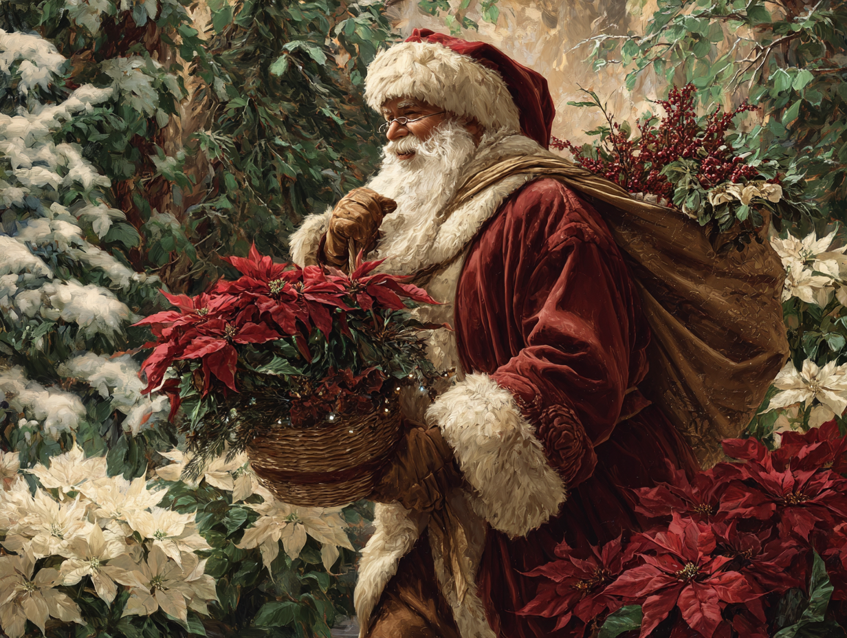 Canvas Print — Vintage Santa with Poinsettias Holiday Wall Art