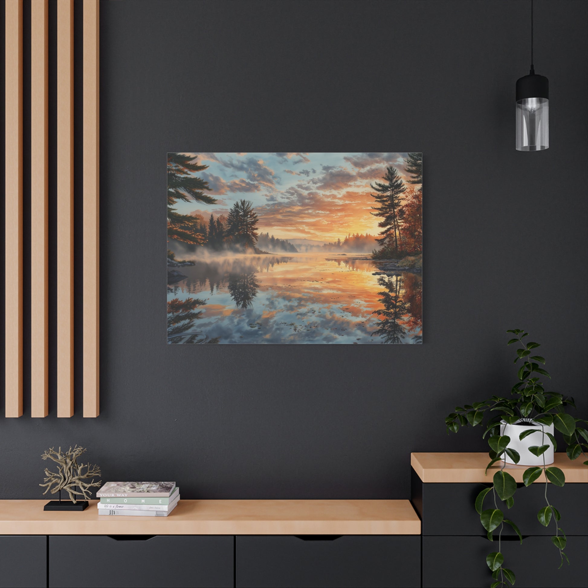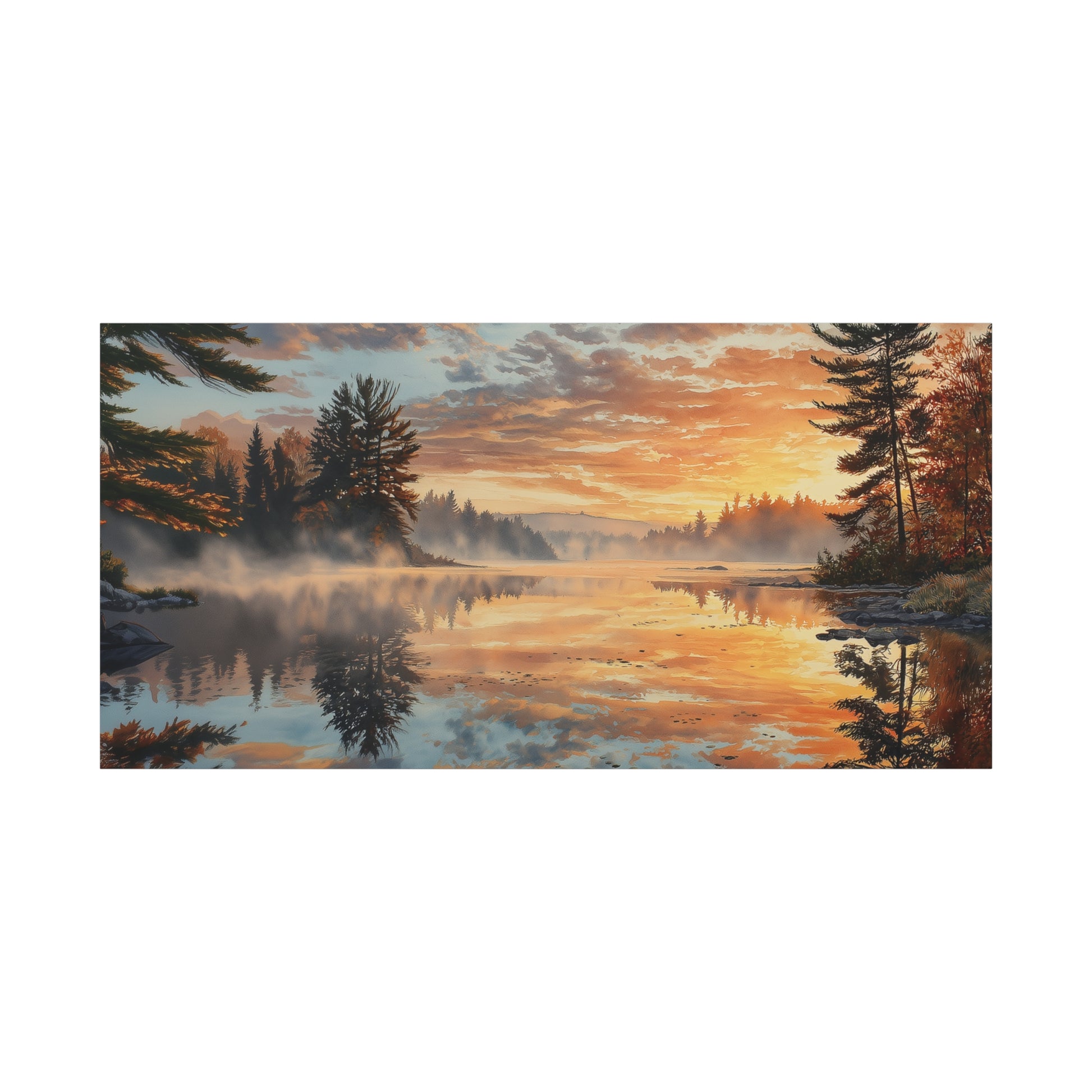Autumn Lakeside Sunrise Canvas — Matte Stretched Wall Art