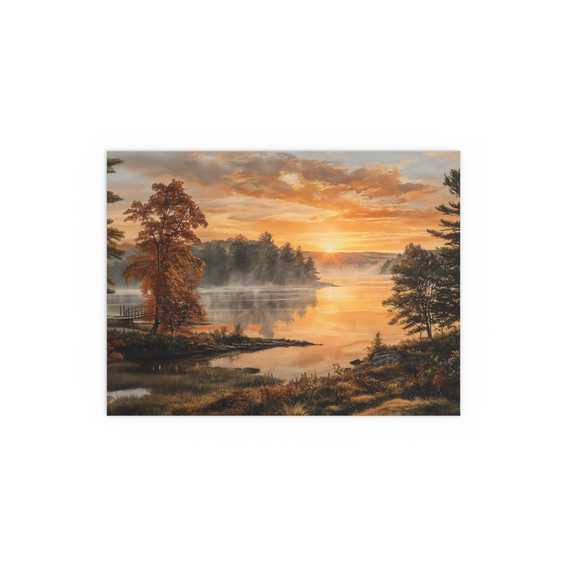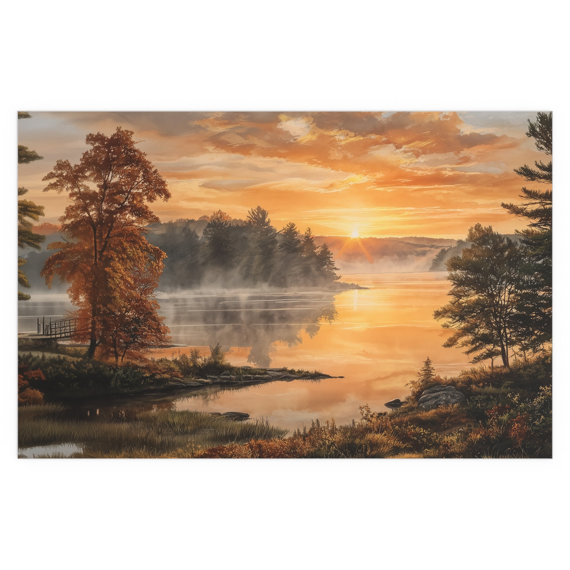 Transform your space with the serene beauty of an autumn sunrise over a tranquil lake. This silk paper print captures the warm golden hues and peaceful reflections of fall's most magical moments.