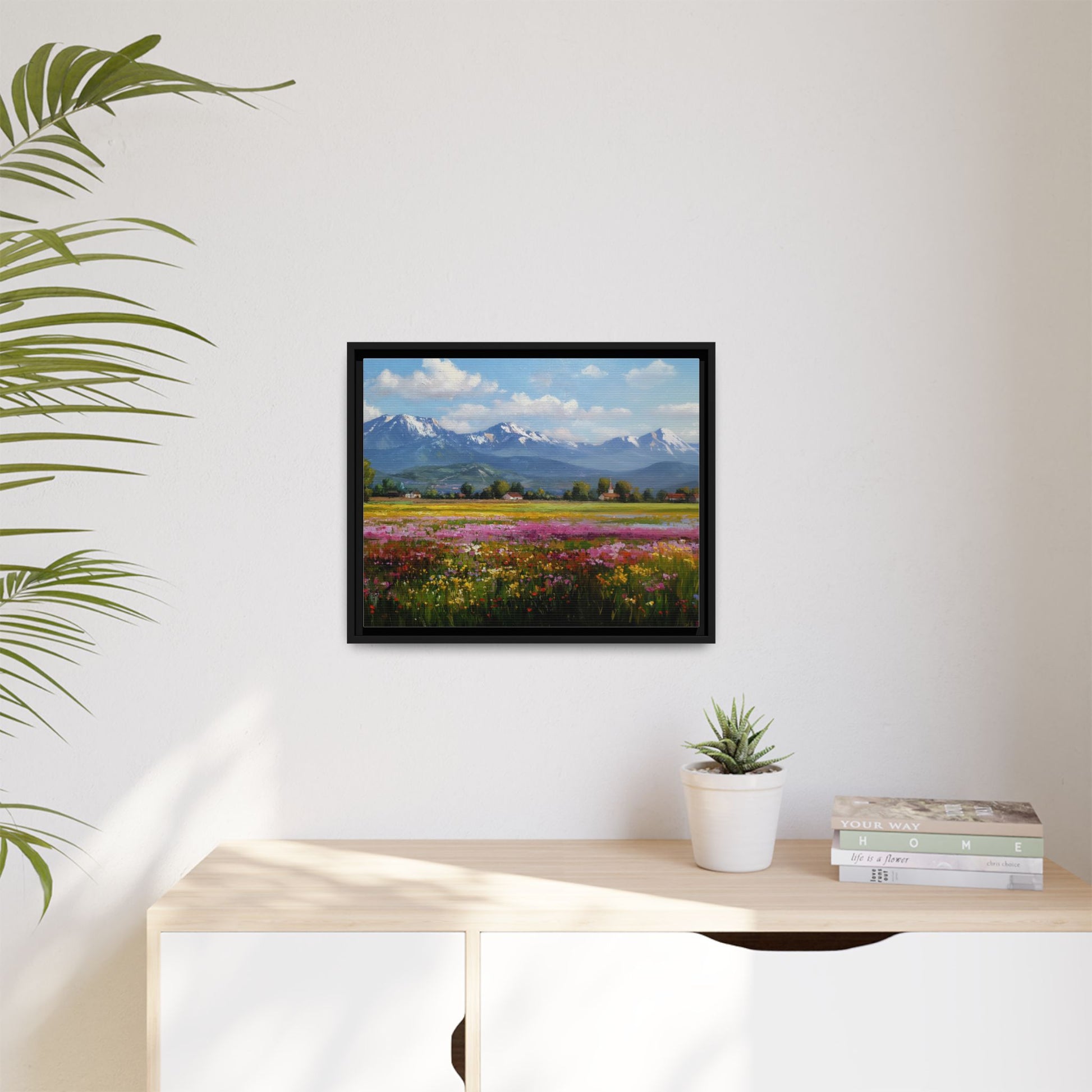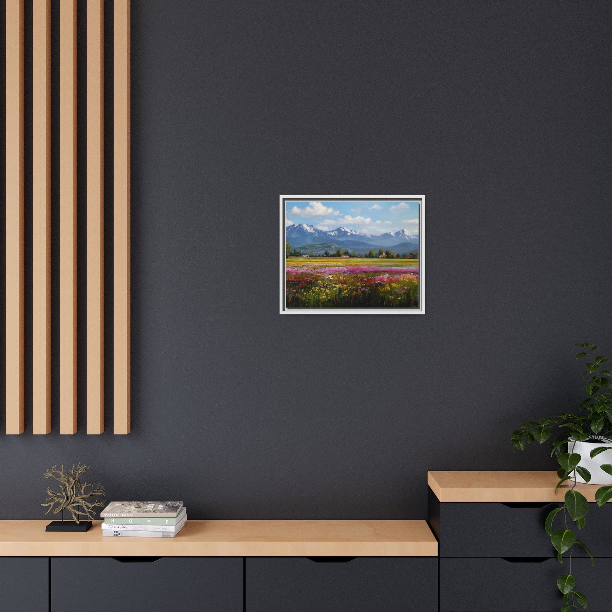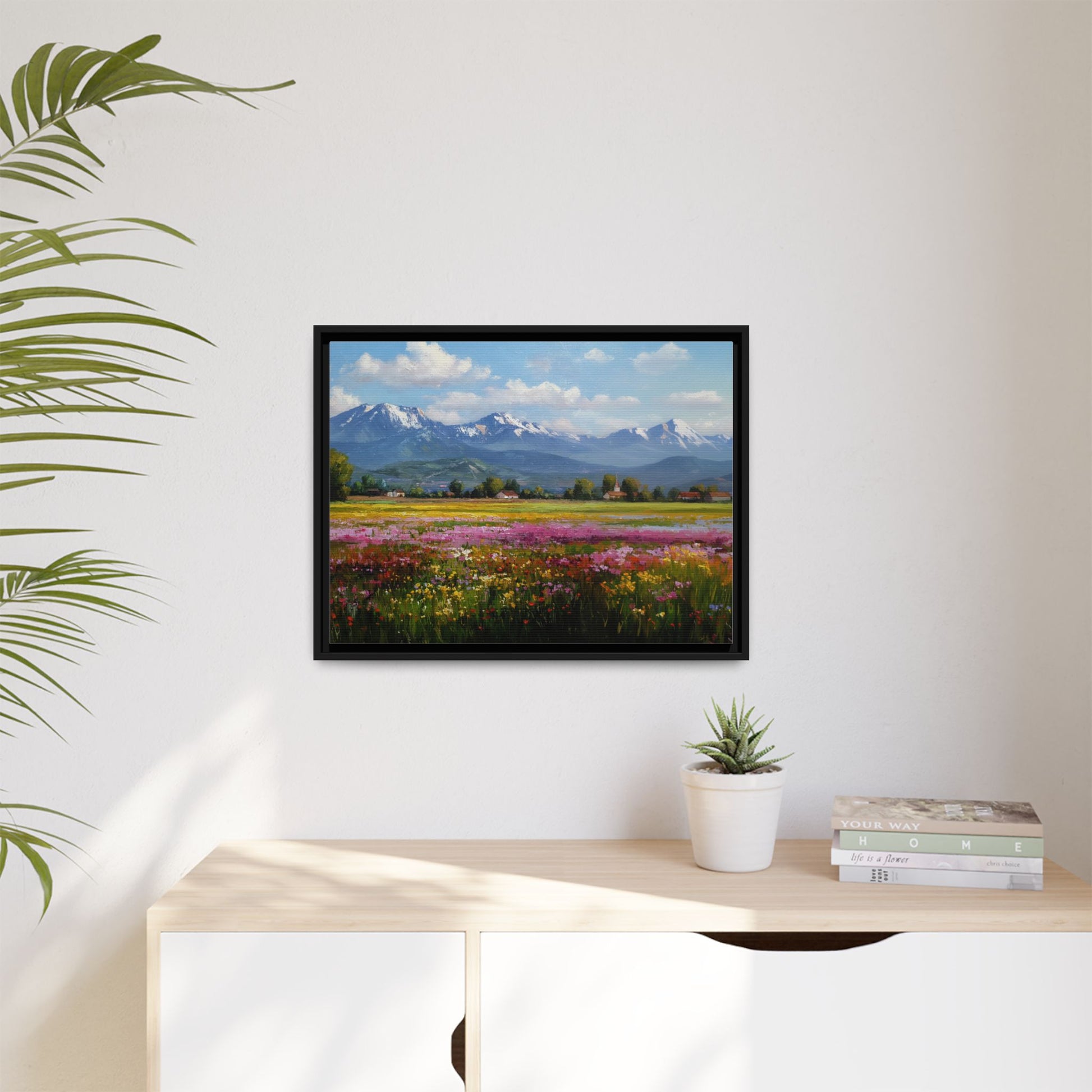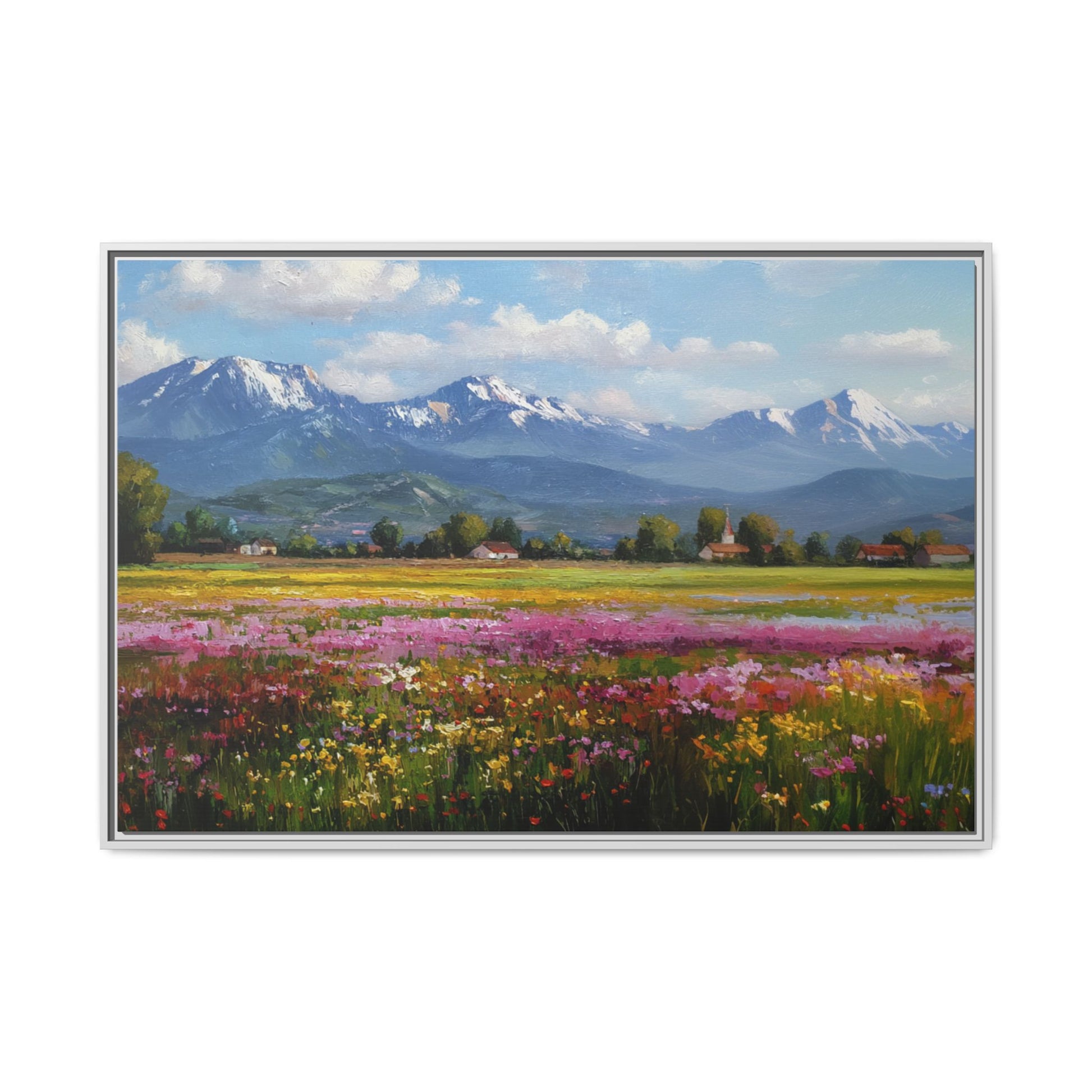 Add a touch of the French countryside to your home with this Wildflower Meadow and Mountain View Matte Canvas Print. Perfect for nature lovers and those seeking a peaceful atmosphere in their living space. Ideal for home decor, gift-giving for nature enthusiasts, housewarming parties, and Mother's Day.