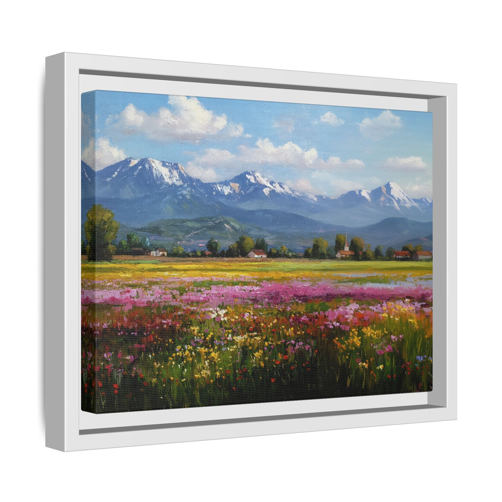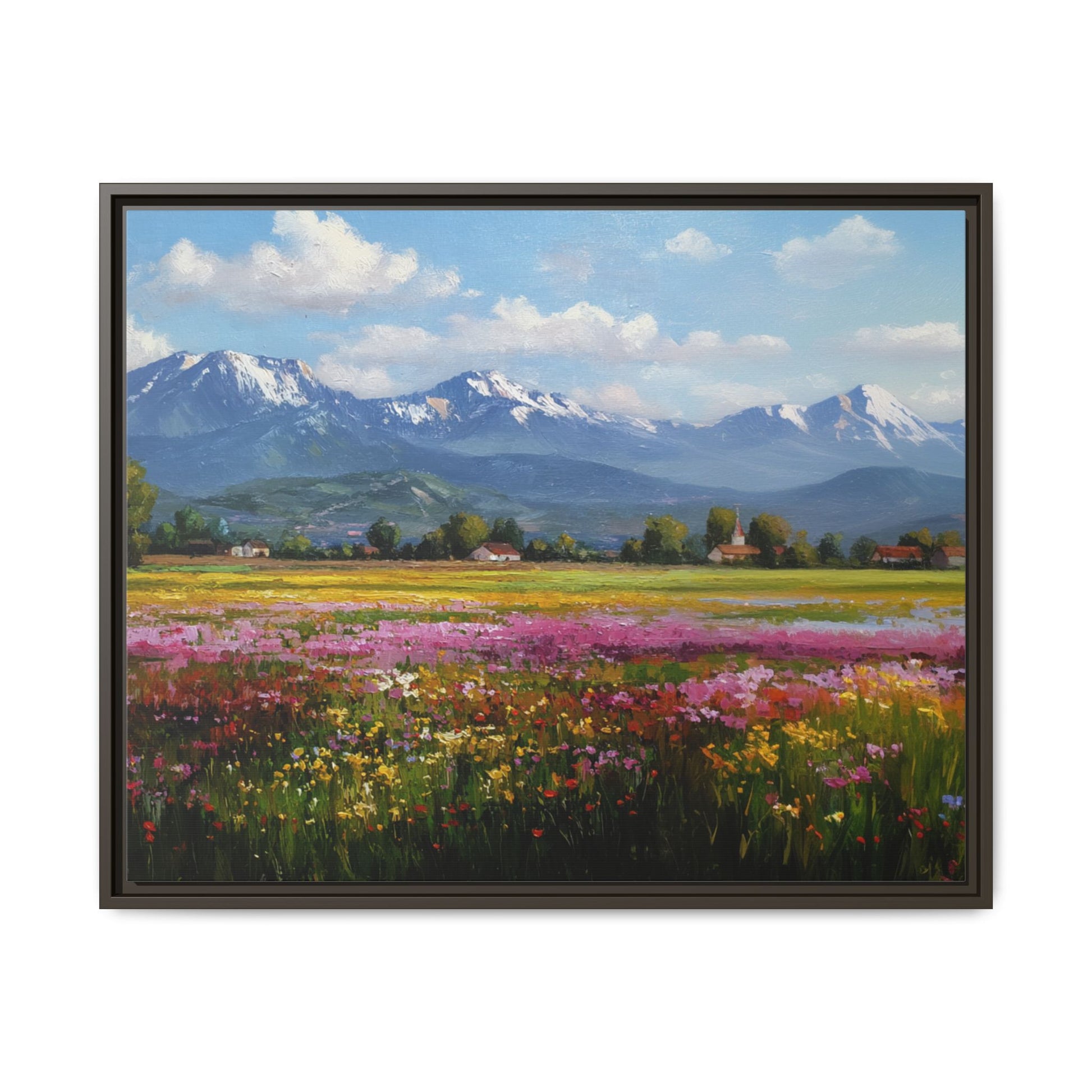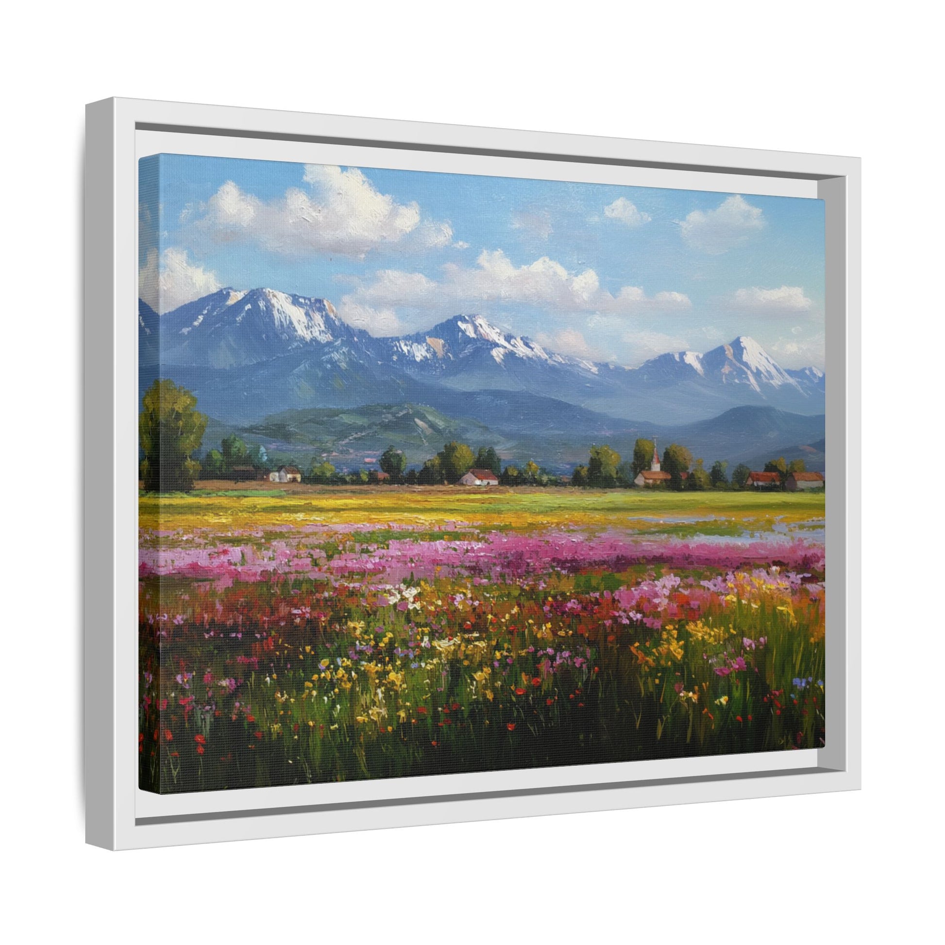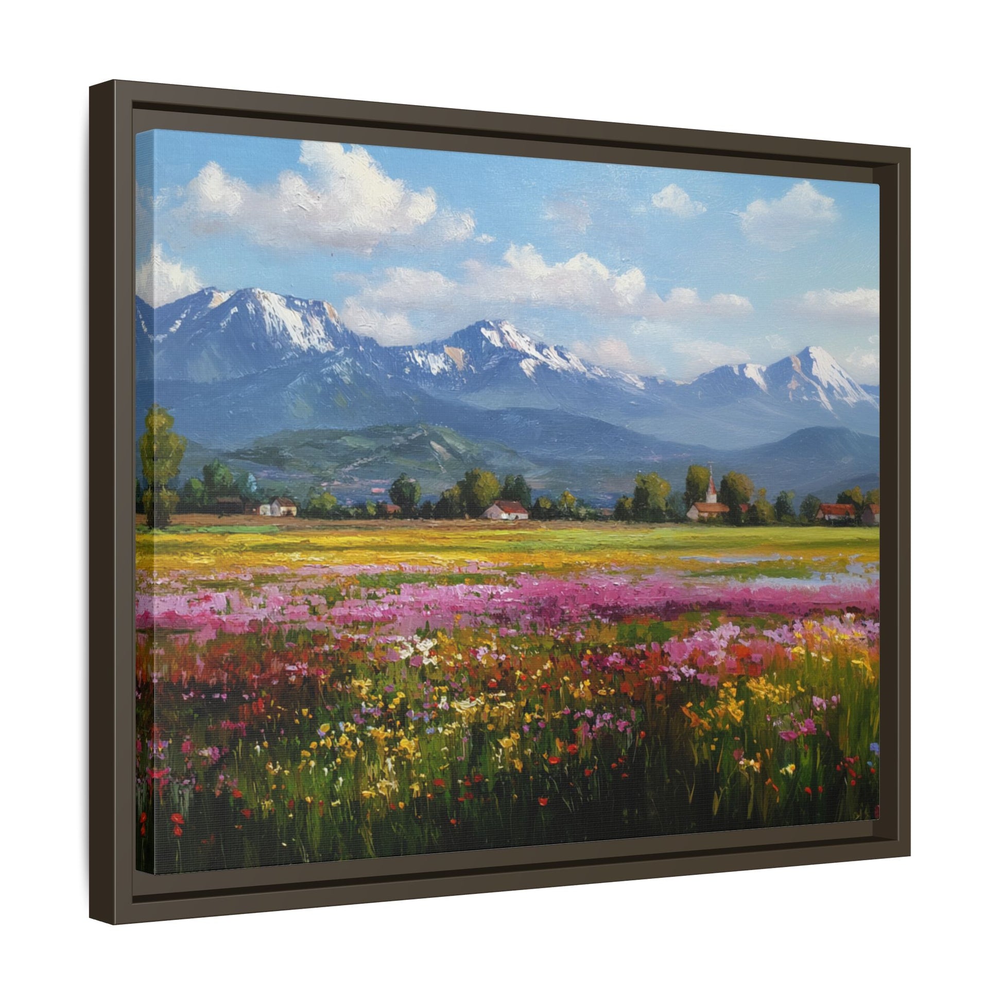 Add a touch of the French countryside to your home with this Wildflower Meadow and Mountain View Matte Canvas Print. Perfect for nature lovers and those seeking a peaceful atmosphere in their living space. Ideal for home decor, gift-giving for nature enthusiasts, housewarming parties, and Mother's Day.