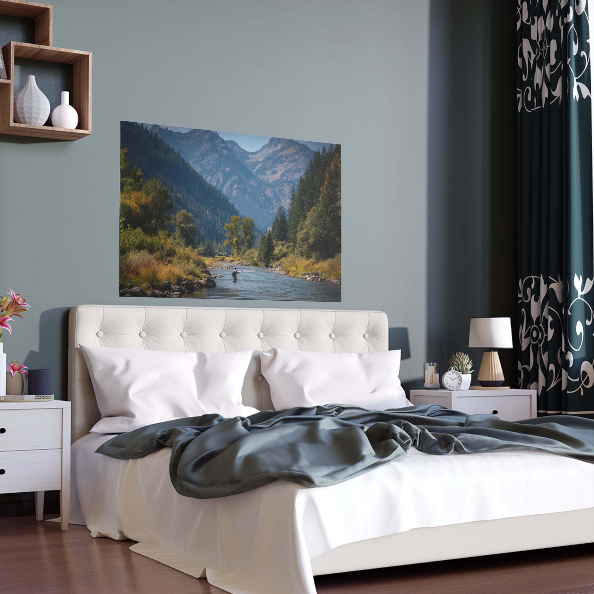 Experience the tranquility of fly fishing in a mountain stream with this scenic Canvas Art. Perfect for nature lovers looking to bring the outdoors inside. Ideal for rustic home decor, cabins, or offices seeking a touch of nature. Great for gifting on Father's Day, birthdays, or housewarmings.