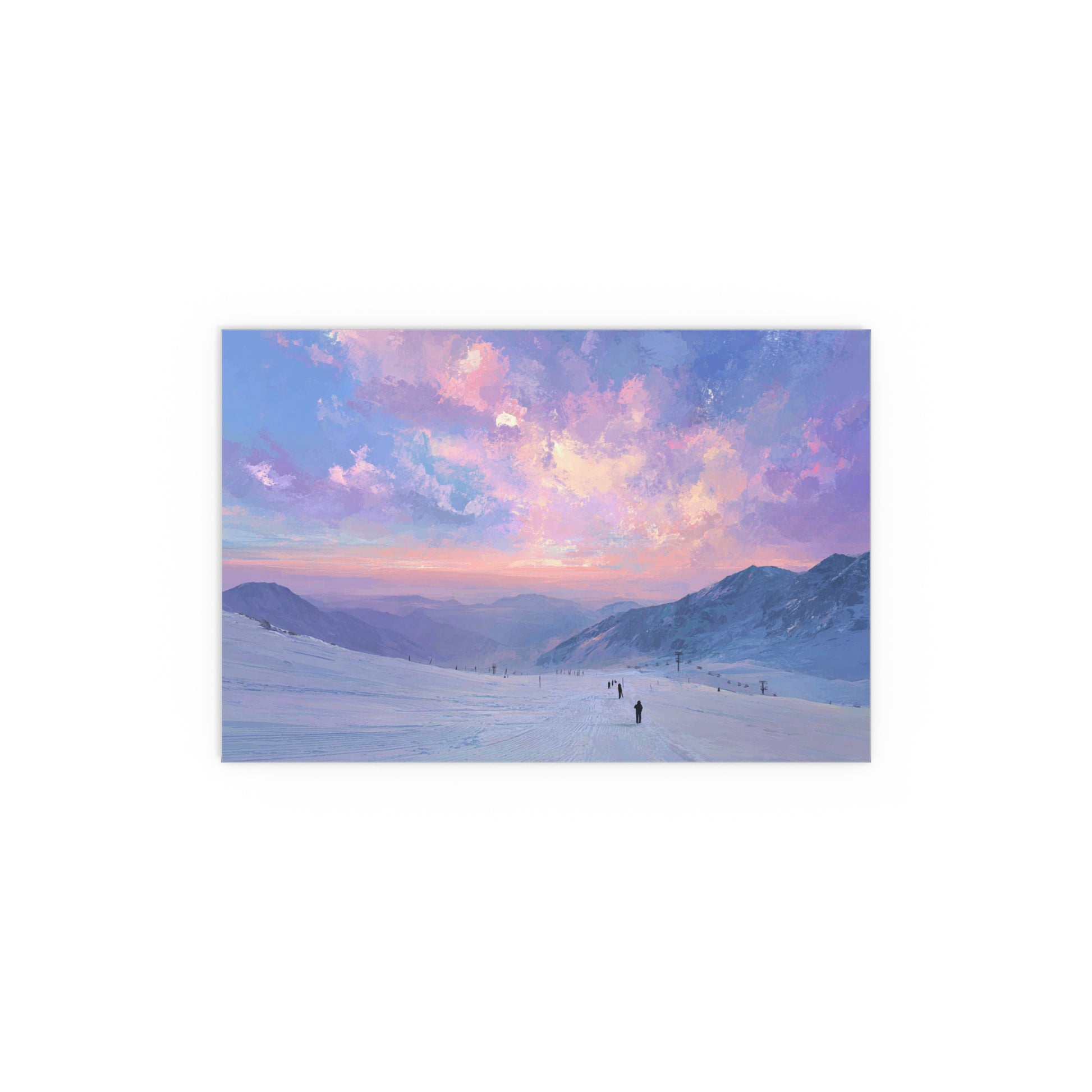 The silk-finish poster captures the hush and glow of the last run at dusk—skis carving through soft snow as the sky deepens to indigo and the mountain exhales. Printed on heavyweight 200 gsm silk paper, the image holds bright, crisp color and a subtle sheen that reads like a memory. Bring this scene to a cabin wall, ski-lodge hallway, or balcony where the air smells like firewood and cold breath; it stands up to mist and light rain, yet keeps that delicate photographic detail. Hang it horizontally above a bench, lean a vertical piece on a shelf, or arrange a square print in a gallery cluster—the durable print and water-resistant finish mean the poster moves with your life, whether it’s the end of a powder day or a quiet evening by the stove.