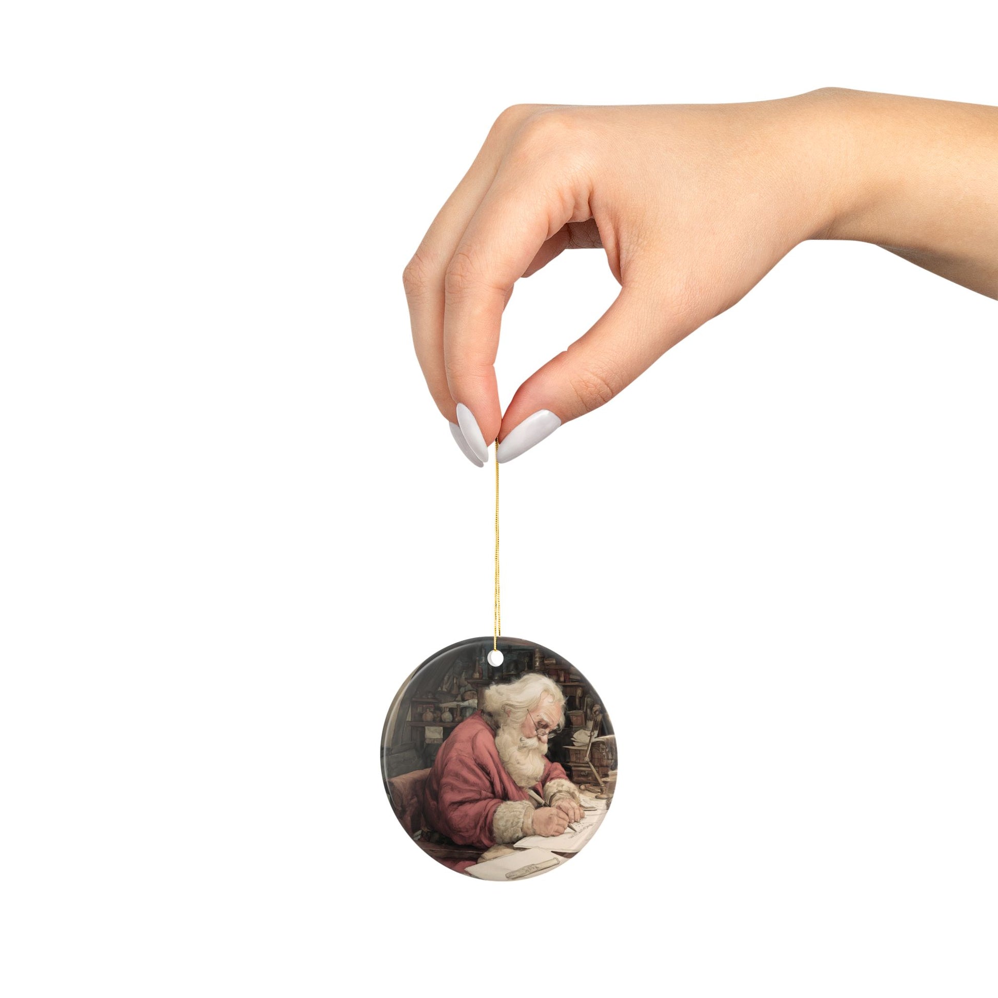 Santa Getting Ready for Christmas - Vintage Illustration Ceramic Christmas Ornament